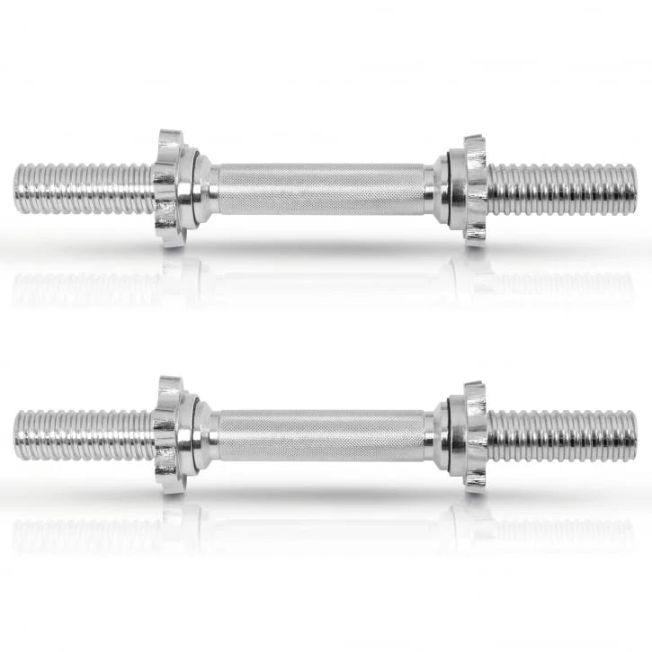 - Hantelstänger: Yta för viktskivor 10,4cm per sida, maximal belastning 100kg, grepplängd 13cm, diameter 30mm, fyra låskragar, längd 35cm, vikt 2x2,5kg
