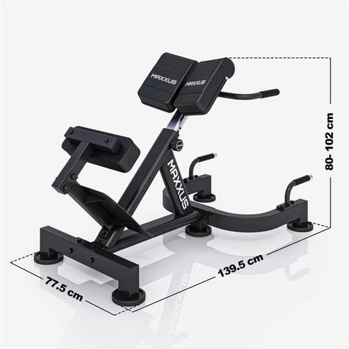 Ryggresning MAXXUS Hyperextension PRO – En stabil och ergonomisk ryggmaskin med justerbara kuddar som gör det möjligt att träna ryggresningar med full kontroll och perfekt passform.